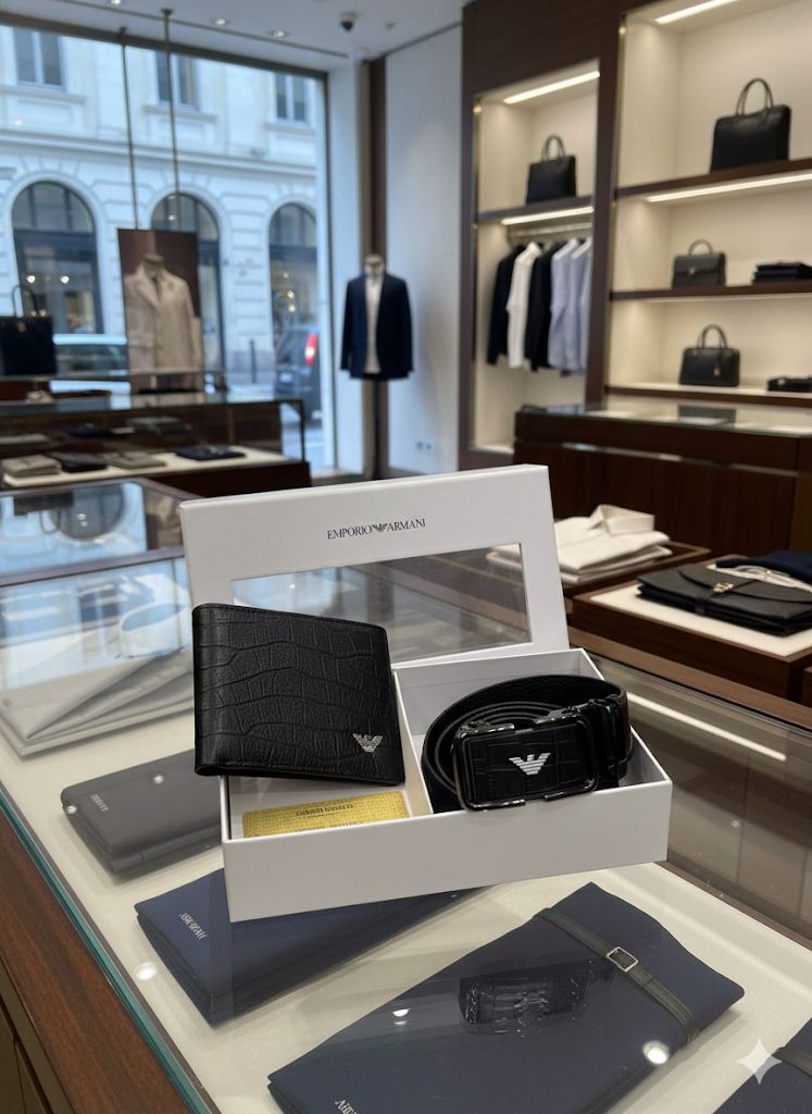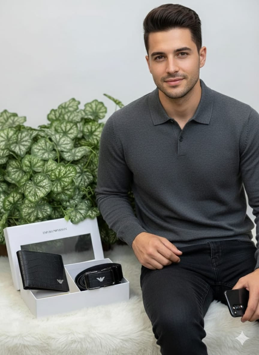 Armani wallet set in top notch quality includes auto lock belt and wallet in genuine leather next to original quality