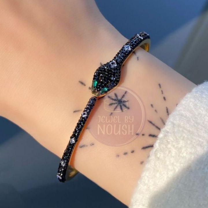 This Imported Snake Bracelet features a unique and stylish Braceley design. Made with high-quality materials, this bracelet is durable and sure to make a statement. Add a touch of luxury to any outfit with this stunning accessory.