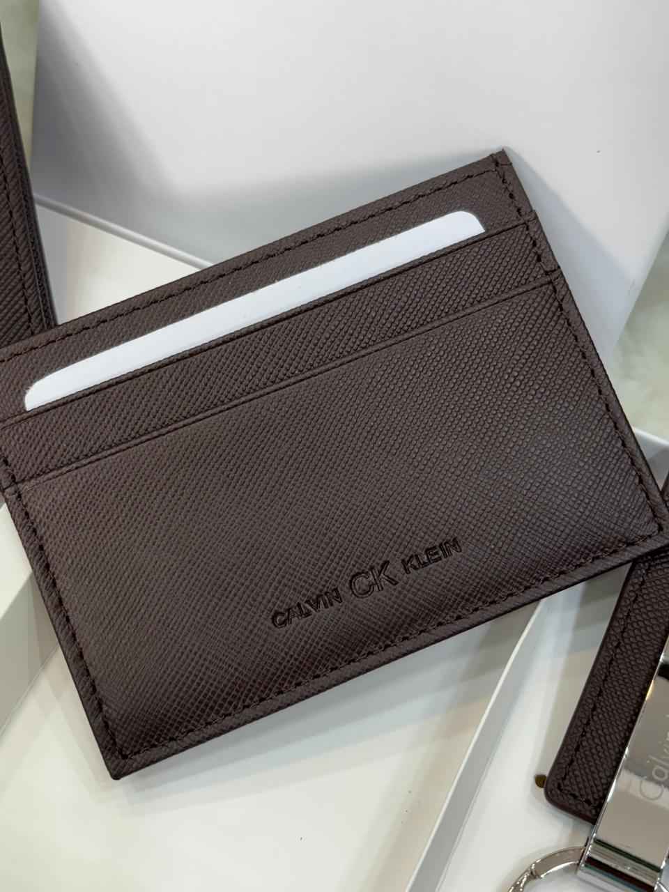 Calvin Klein gift set In genuine leather ( brown ) includes wallet,card holder and key chain holder next to original quality