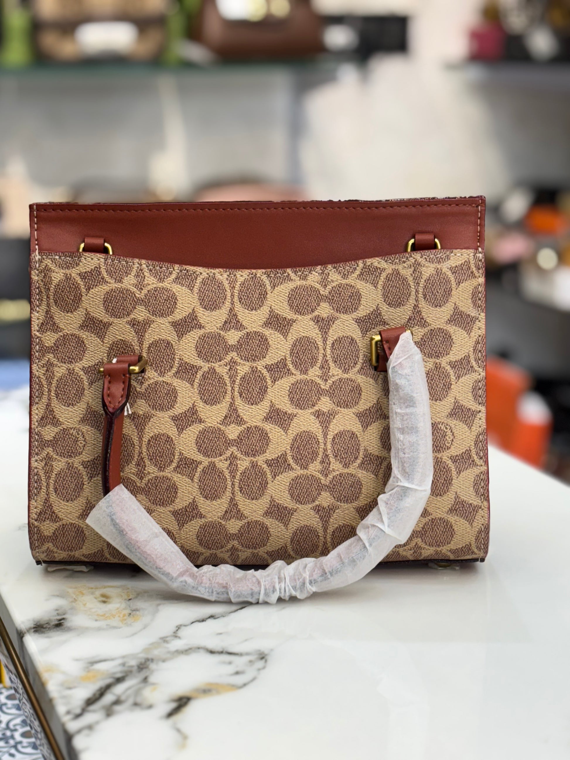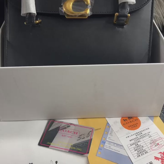 The spacious fold over silhouette is crafted of luxe refined leather with a high shine finish and secures with our push lock "C" closure. Featuring pockets inside and out for easy organization and room for a 16" laptop, carry it by hand or use the detachable strap to wear it crossbody.