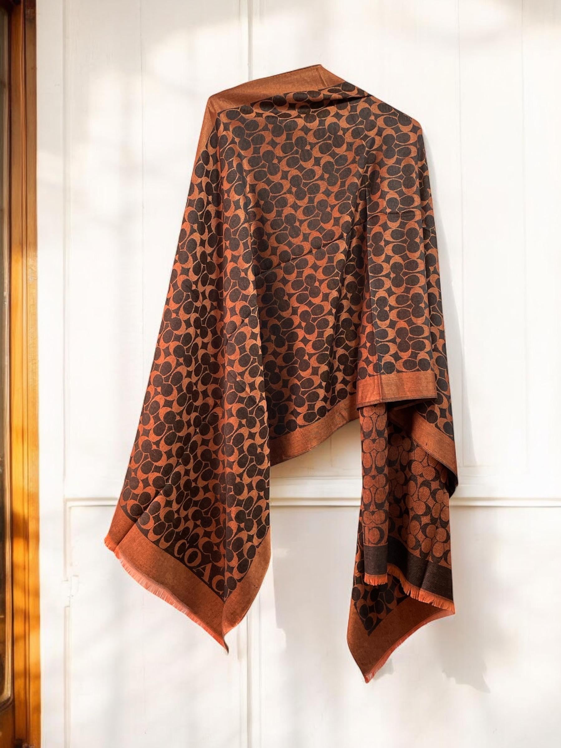 Semi warm stole This semi-warm stole from Coach is the perfect accessory for keeping stylish and cozy this season. Made with high-quality materials, it provides just the right amount of warmth without being too heavy. Ideal for adding a touch of sophistication to any outfit.