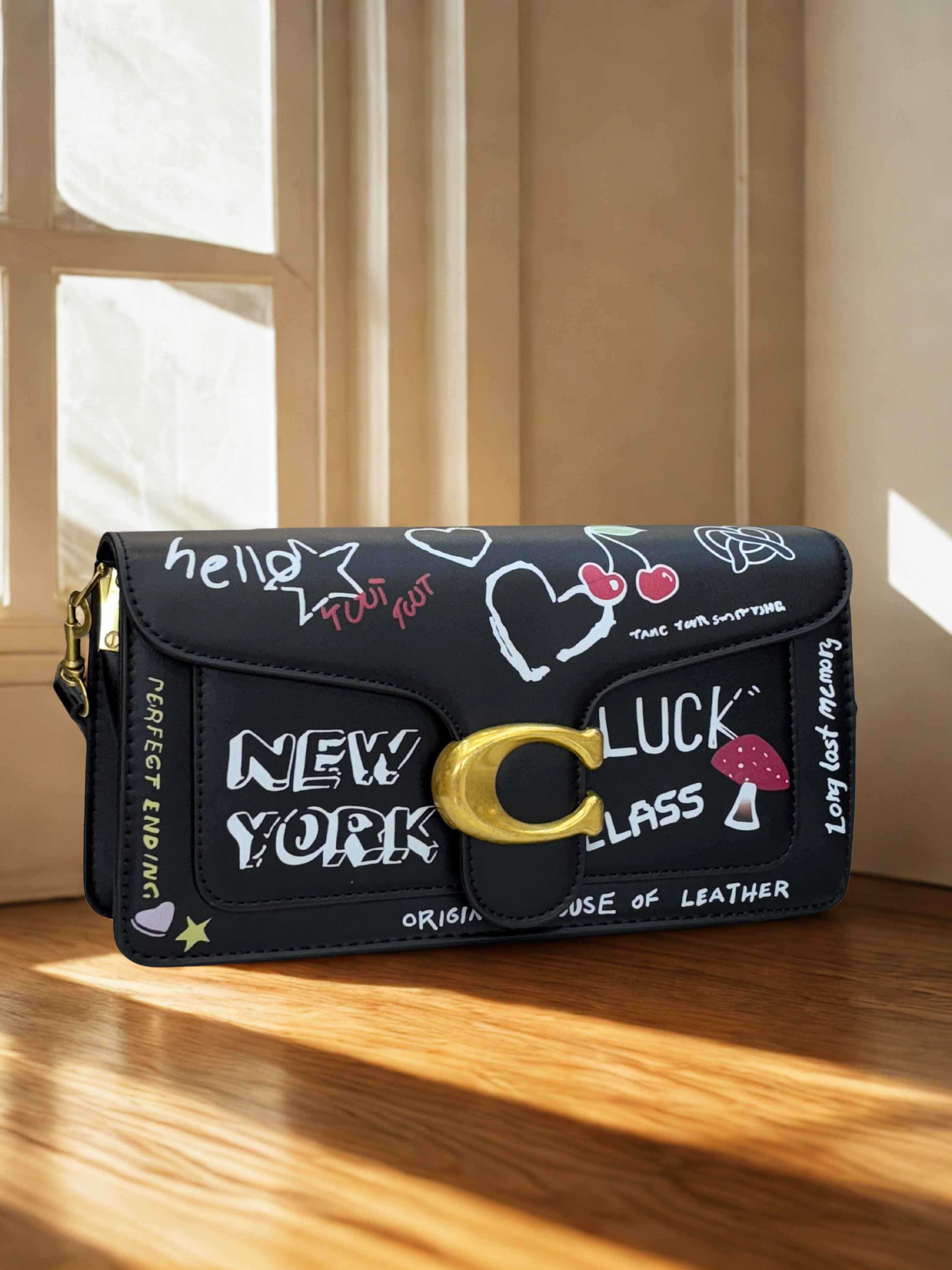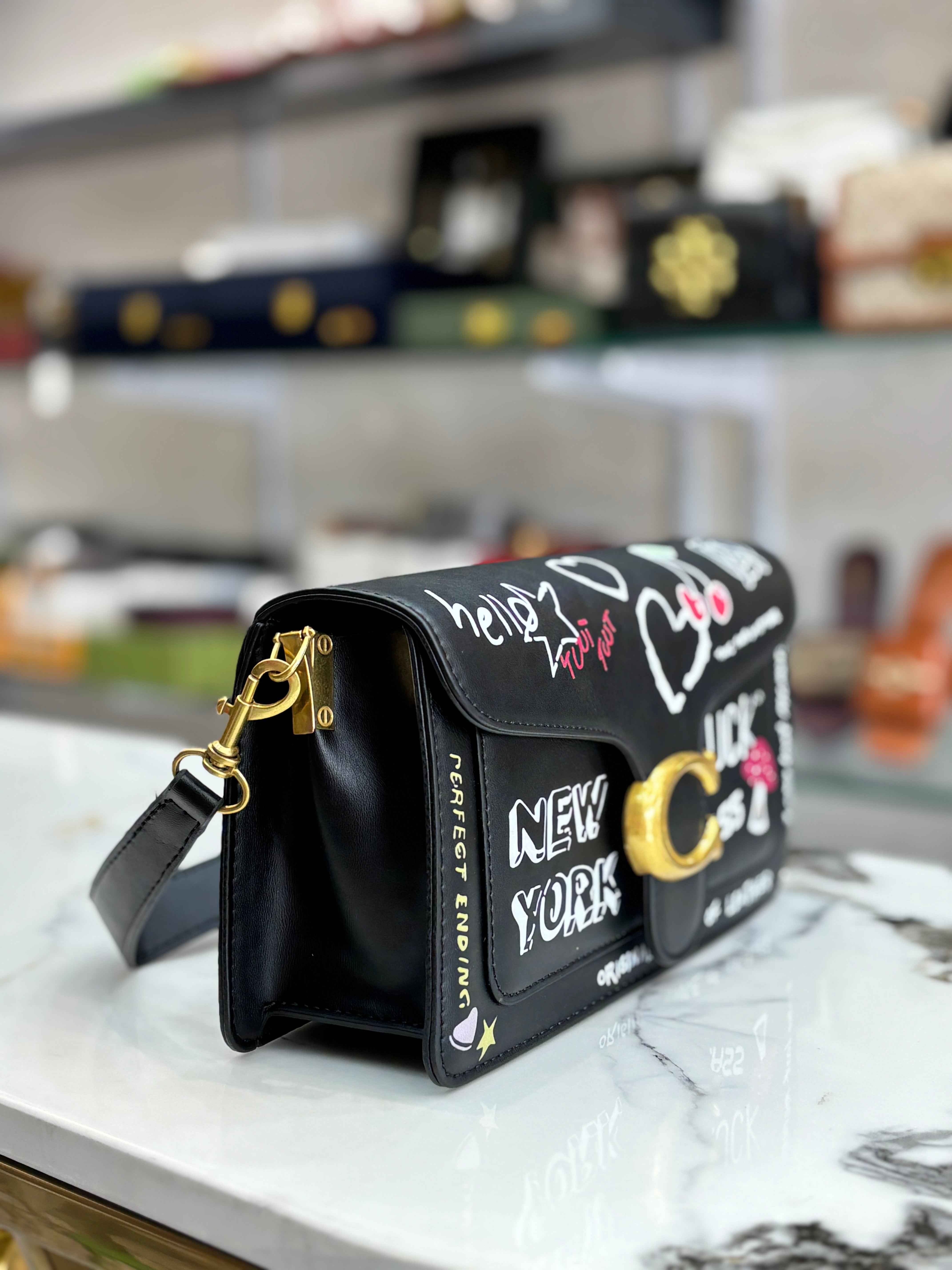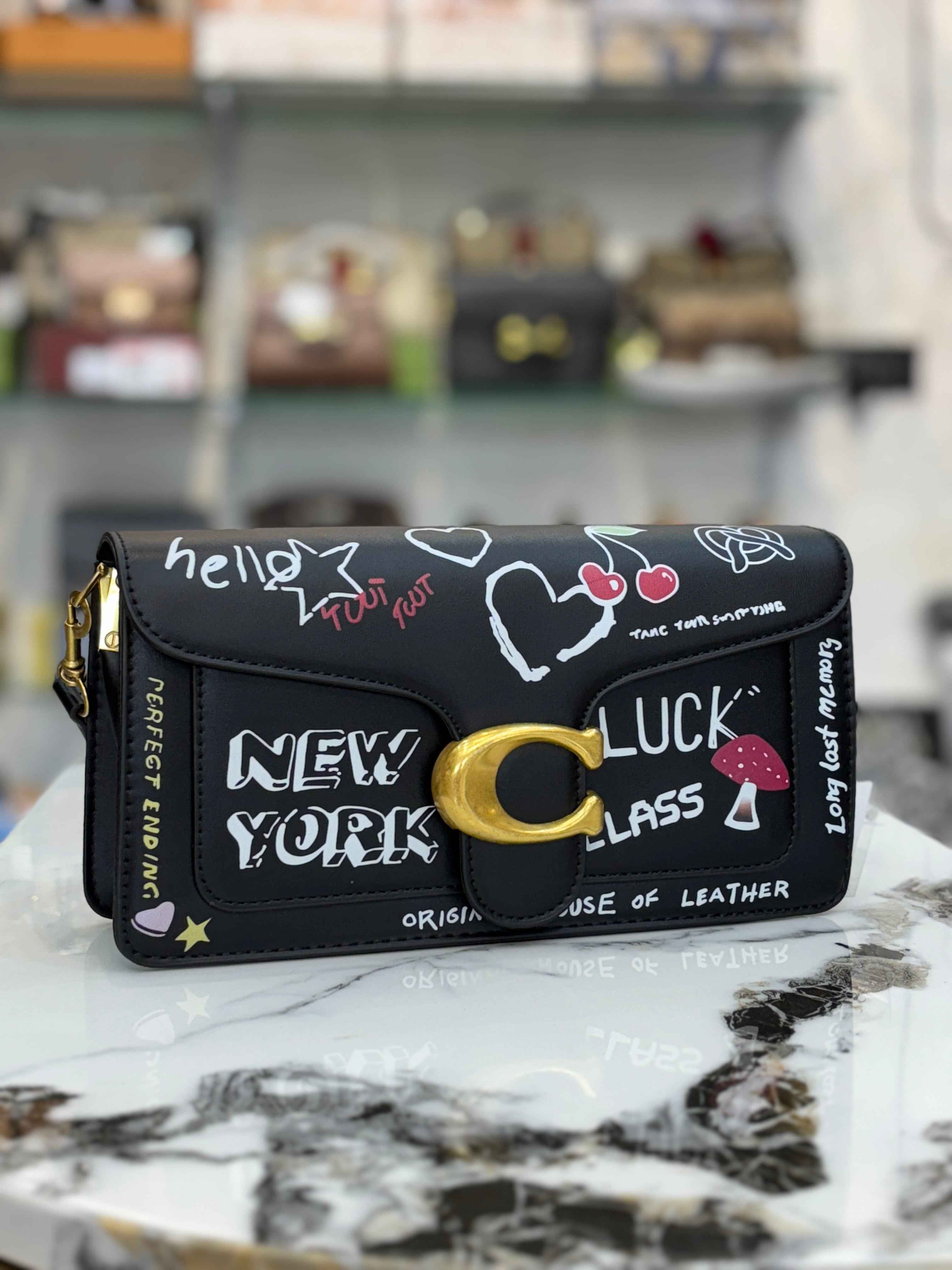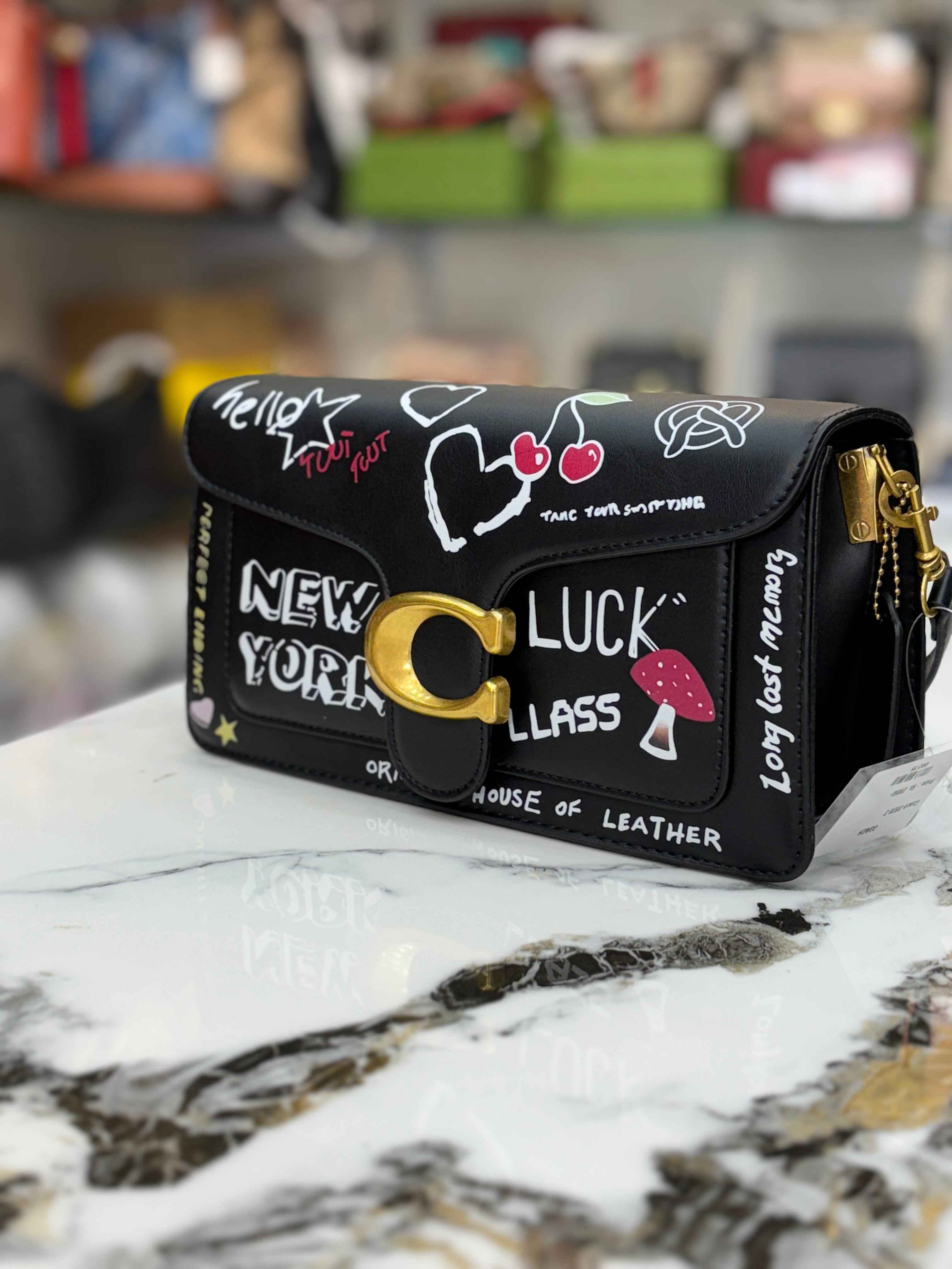 This Coach tabby bag boasts a unique sketch print, adding a touch of artistic flair to your look. Made with high-quality materials, this bag exudes luxury and sophistication. Perfect for any fashion-forward individual, this bag is a must-have in your collection.
