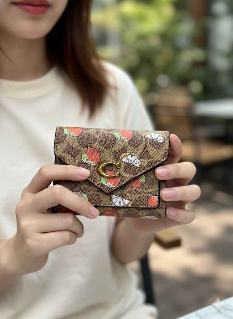This three fold printed wallet by Coach boasts a sleek and stylish design, perfect for the fashion-conscious individual. Constructed with high-quality materials, this wallet offers durability and functionality, making it an essential accessory for everyday use. With its iconic brand name, it's both a practical and stylish addition to your wardrobe.