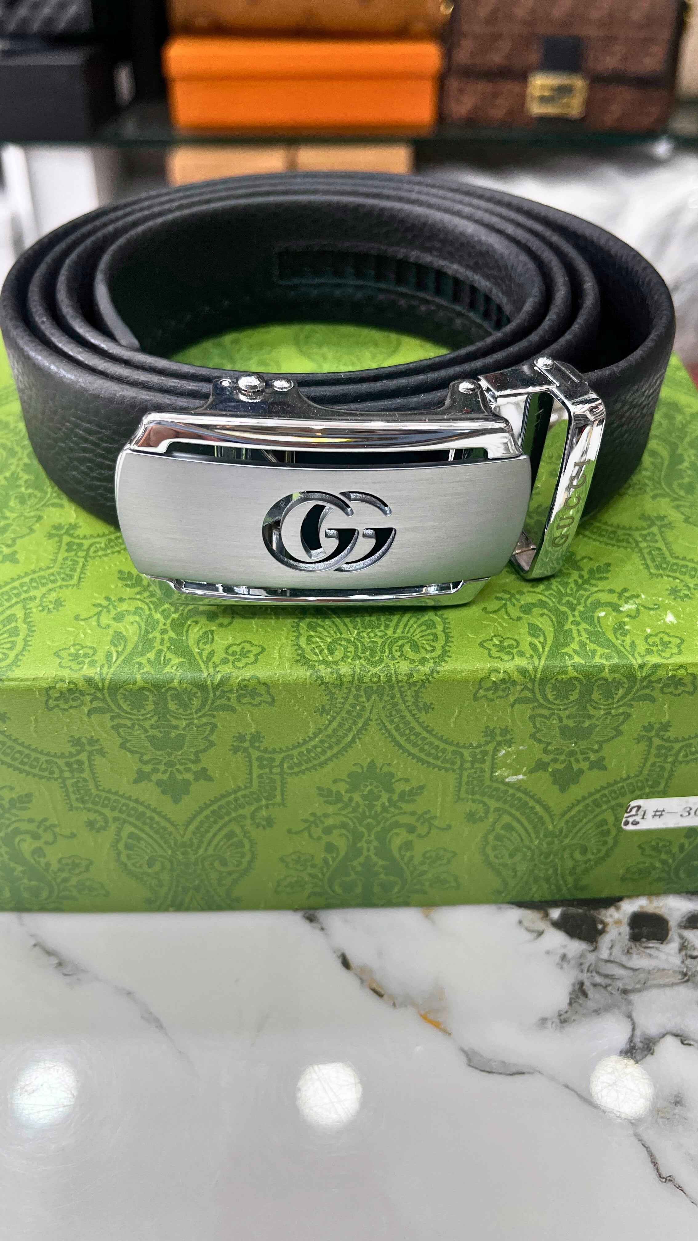 This Gucci auto lock belt is expertly crafted with high-quality materials, ensuring durability and long-lasting wear. Its sleek, minimal design offers understated elegance, while the auto lock mechanism provides secure and convenient use. Add this luxury accessory to your wardrobe for a touch of timeless style.