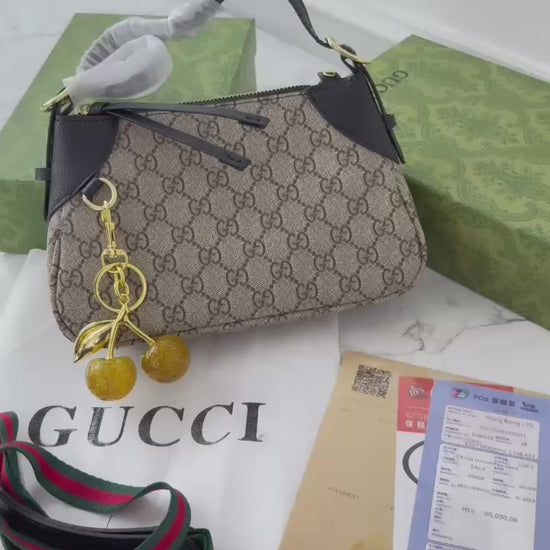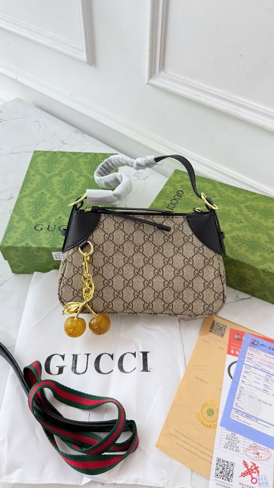 Gucci bag ( Cherry charm not included) This stylish Gucci bag is a must-have for any fashion-forward individual. Crafted with impeccable quality and the iconic Gucci logo, it exudes luxury and sophistication. Perfect for any occasion, it's a timeless investment that will elevate your wardrobe.