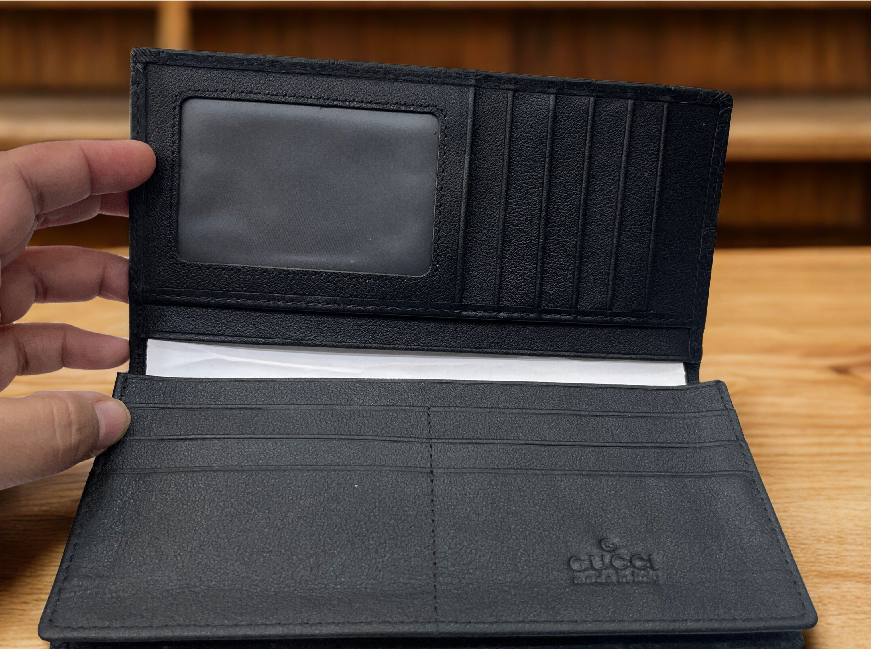 The Gucci Emboss Wallet is expertly crafted with the iconic Gucci logo, exuding luxury and sophistication. Made with high-quality materials, it boasts durability and style. Elevate your everyday look with this timeless accessory, showcasing your impeccable taste as a fashion connoisseur.