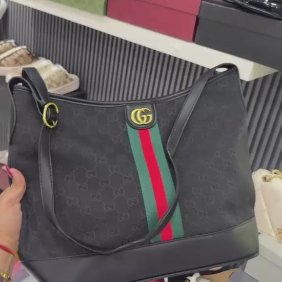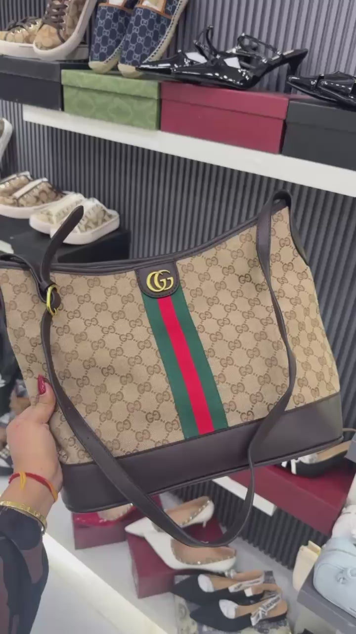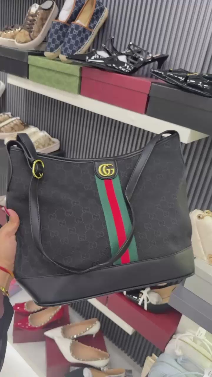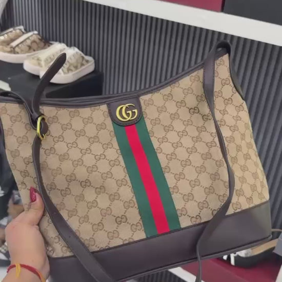 Elevate your style with the iconic Gucci tote. Made with the finest materials, this luxury bag exudes sophistication and elegance. Perfect for any occasion, it showcases the renowned Gucci brand and its timeless design. Elevate your wardrobe with this statement piece that is sure to turn heads.