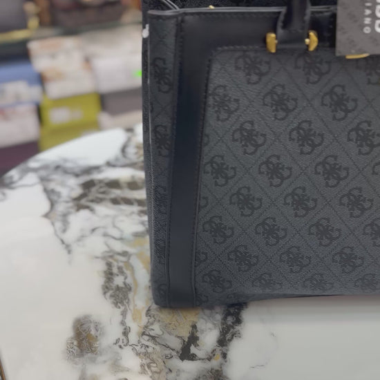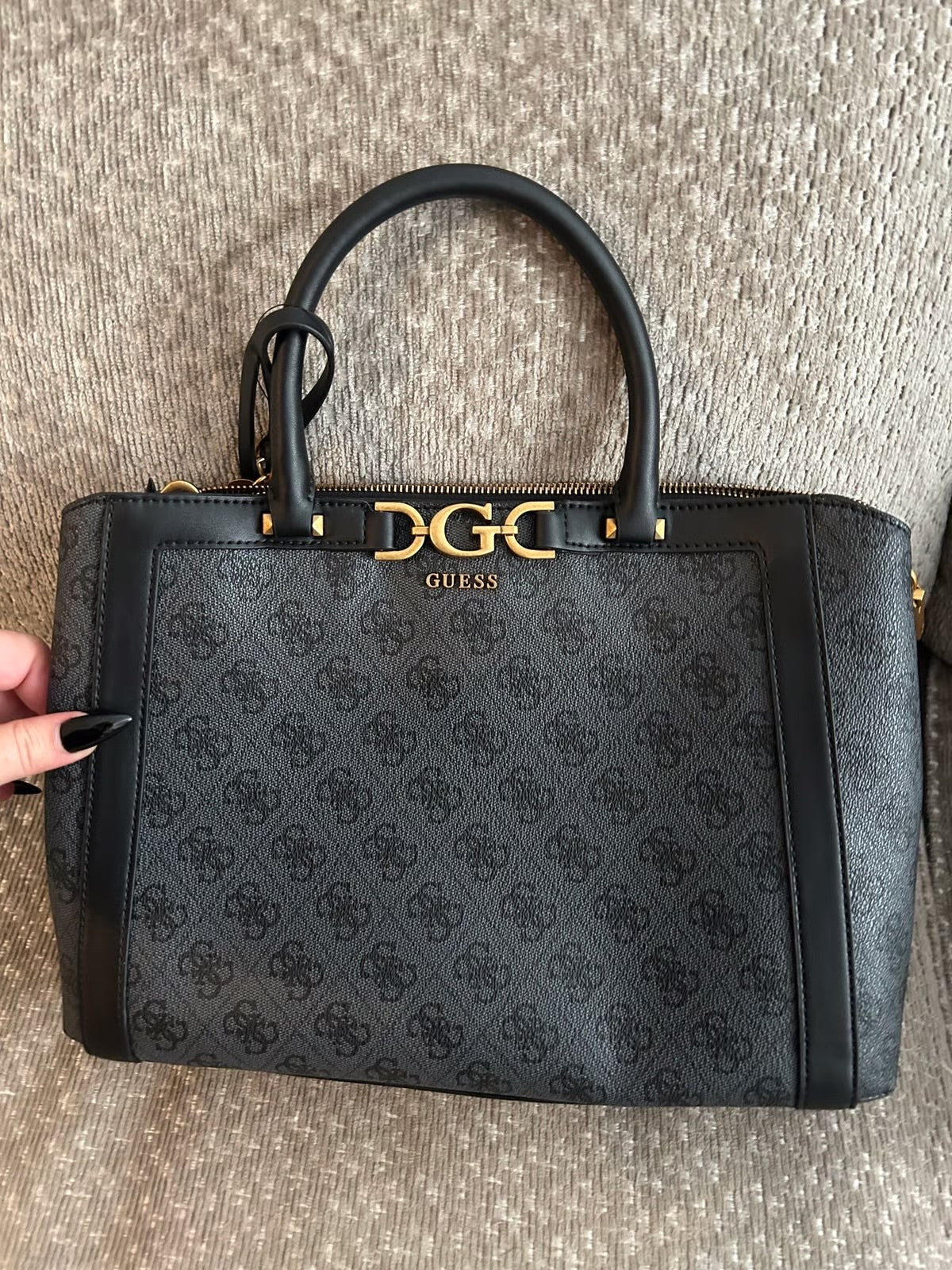 This sleek Guess tote is perfect for any fashion-forward individual. Made with high-quality materials, it boasts a sophisticated design that exudes elegance and style. With a spacious interior and durable construction, it's the ideal accessory for work, errands, or a night out. Elevate your wardrobe with this must-have tote.