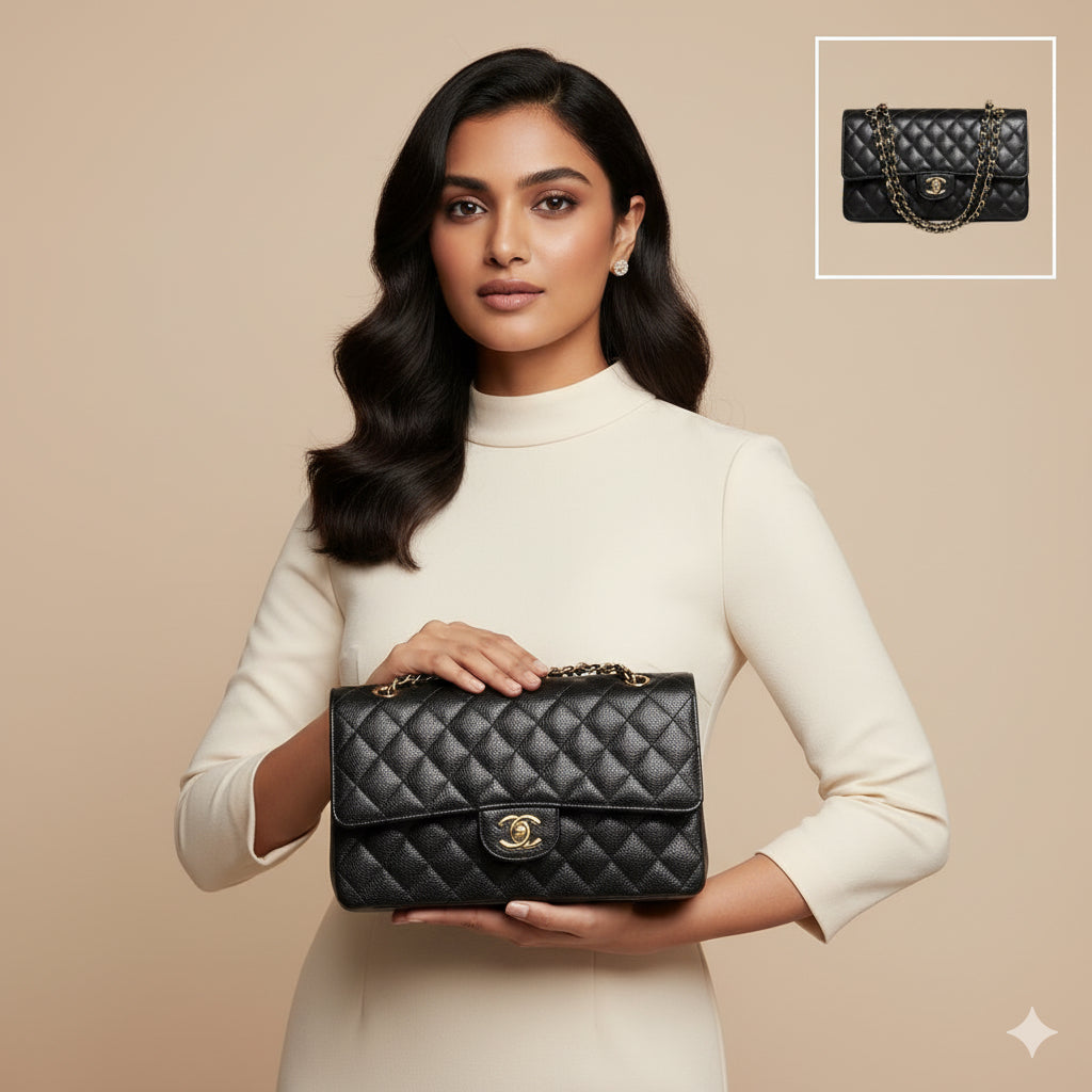 Made from premium Caviar leather, the Chanel Jumbo bag showcases meticulous detailing, flawless stitching, and the signature interlocking CC logo, symbolizing prestige and power. With its 12 x 7.5-inch structure, it offers the perfect balance of spaciousness and style — ideal for both day and evening occasions.