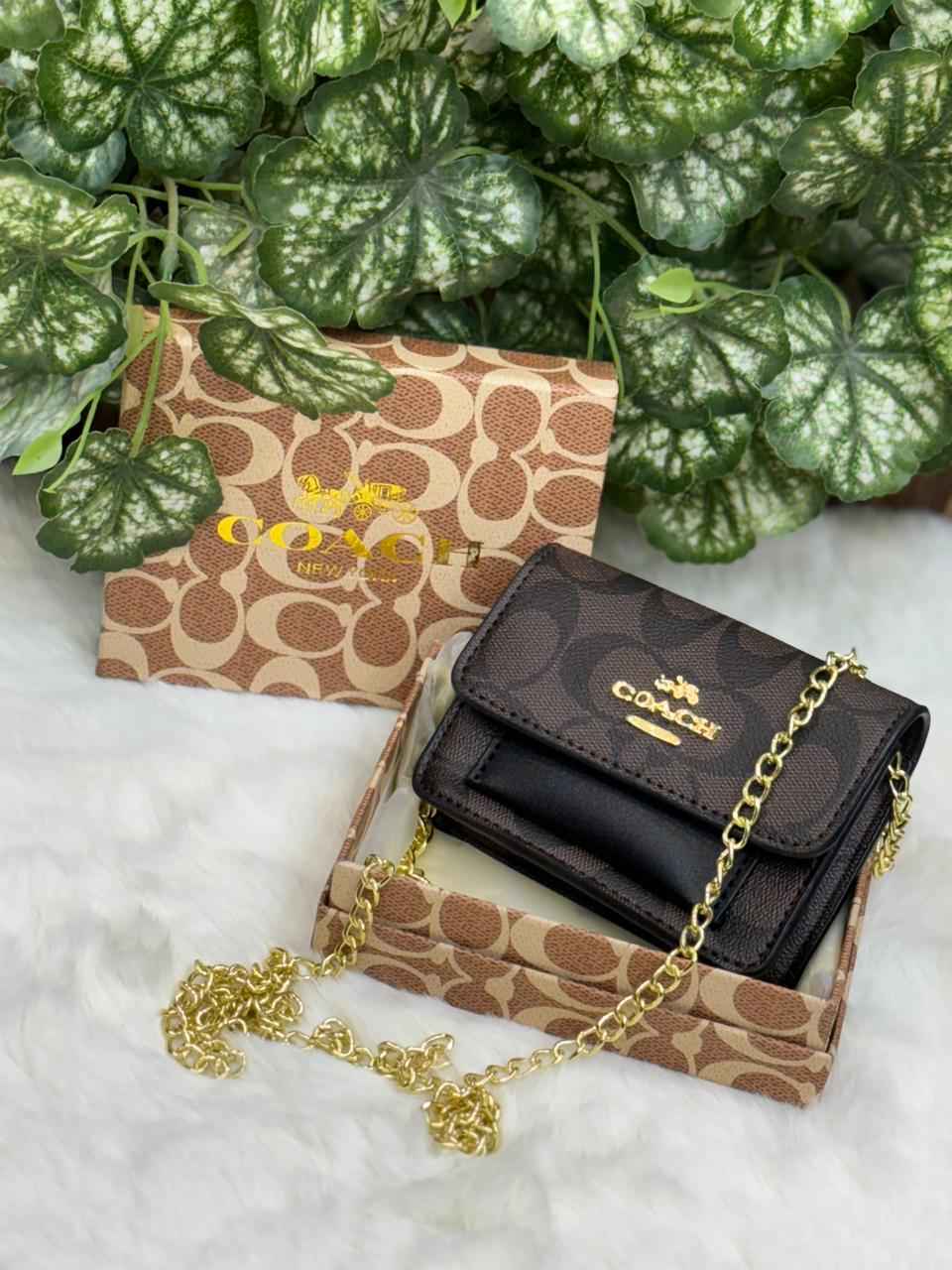 Luxury Coach Flap Wallet Cum Sling with Chain for Women – Premium Edition