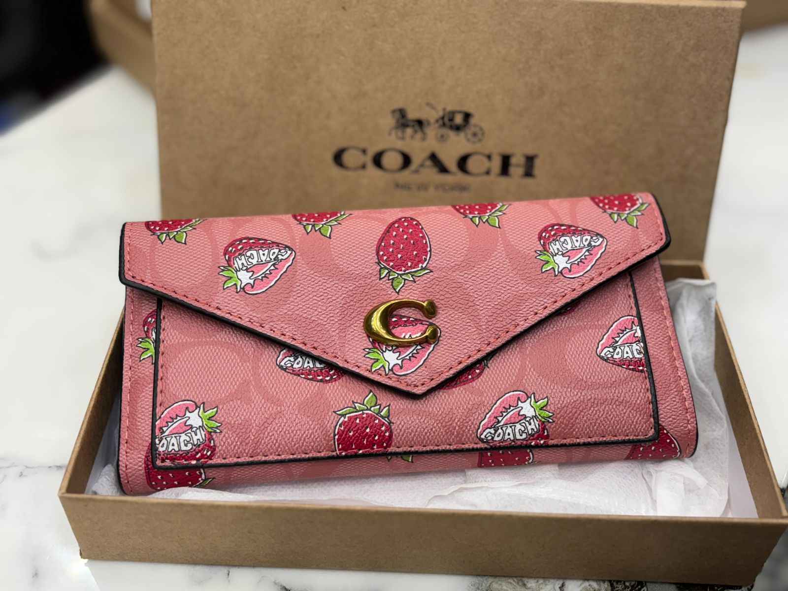 Luxury Coach Strawberry Three Fold Long Wallet