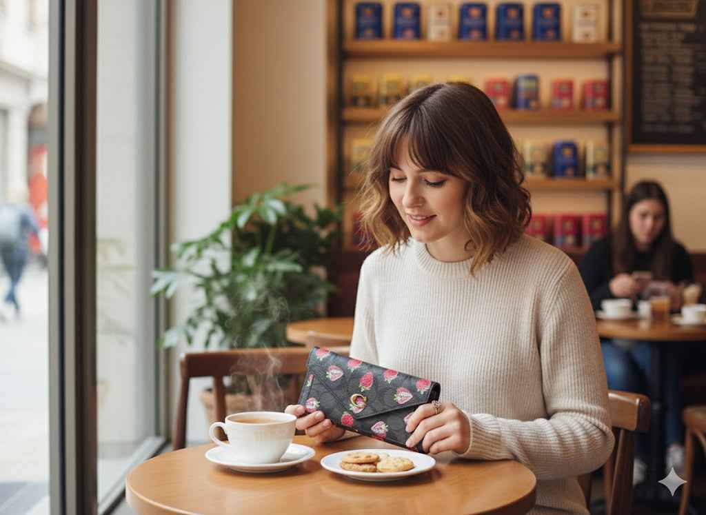 Crafted from high-quality materials, the wallet features a three-fold structure with multiple compartments for cards, cash, and essentials — ensuring both style and organization. The charming strawberry motif adds a fresh, fashionable twist that sets it apart from traditional designs.