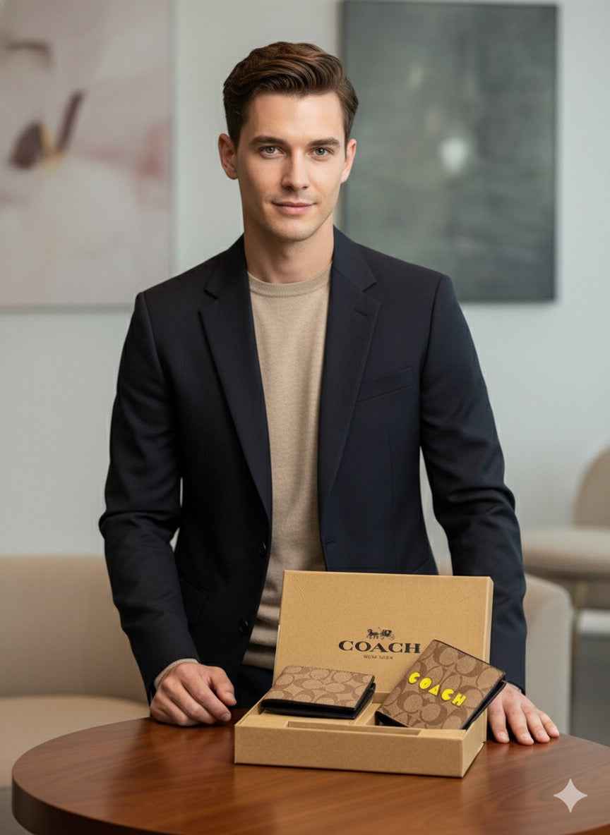 Shop the Luxury Coach Wallet Set for Men in Master AAA quality. Premium 3-piece set including wallet, card holder & key chain set — stylish, durable, and perfect for everyday use.