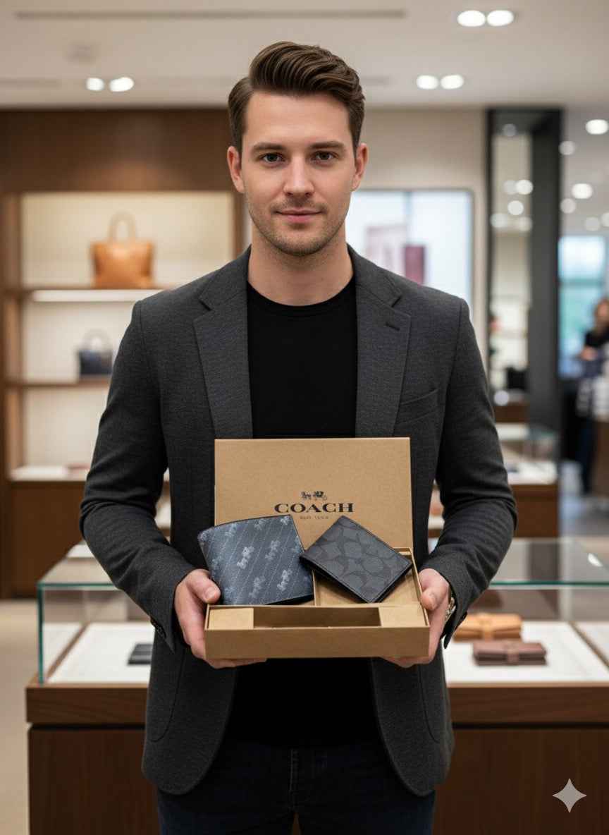 Upgrade your everyday essentials with the Luxury Coach Wallet Set for Men, crafted for those who value sophistication, durability, and premium organization. This 3-piece set includes a wallet, card holder, and key chain holder, each featuring the signature Coach detailing and Master AAA quality finish.