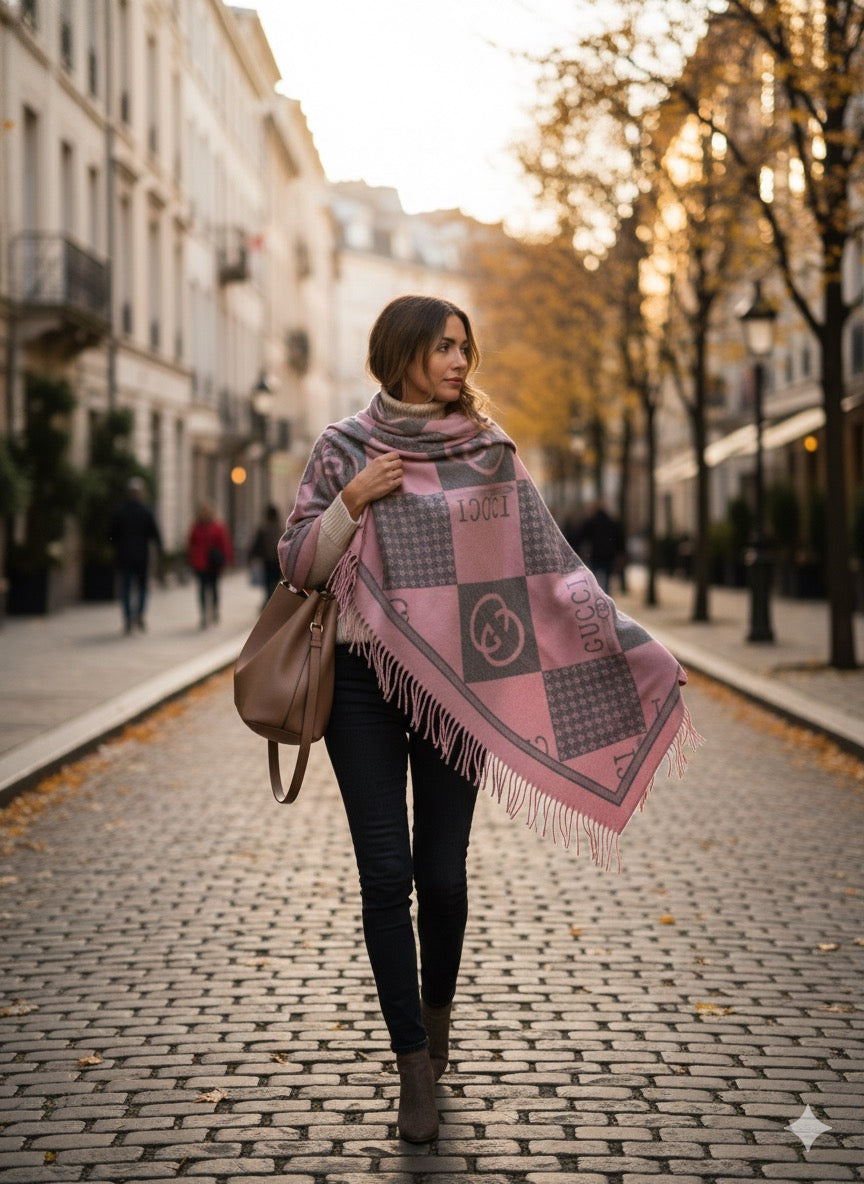 Wrap yourself in pure elegance with the Luxury Gucci Full Length Cashmere Shawl, a timeless accessory designed for women who appreciate sophistication and comfort. Crafted from premium, soft cashmere-blend fabric, this shawl drapes beautifully, offering exceptional warmth without compromising on style.