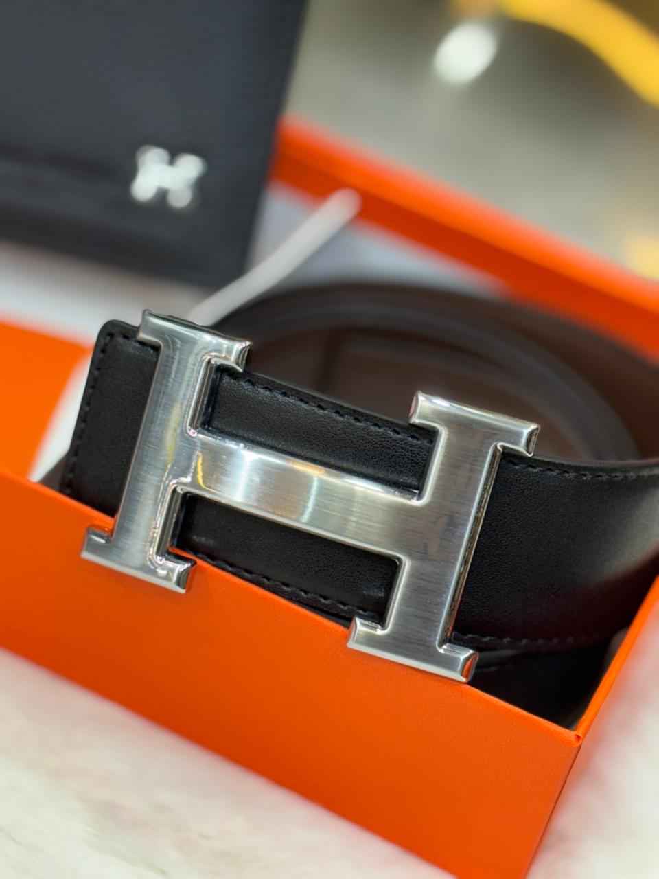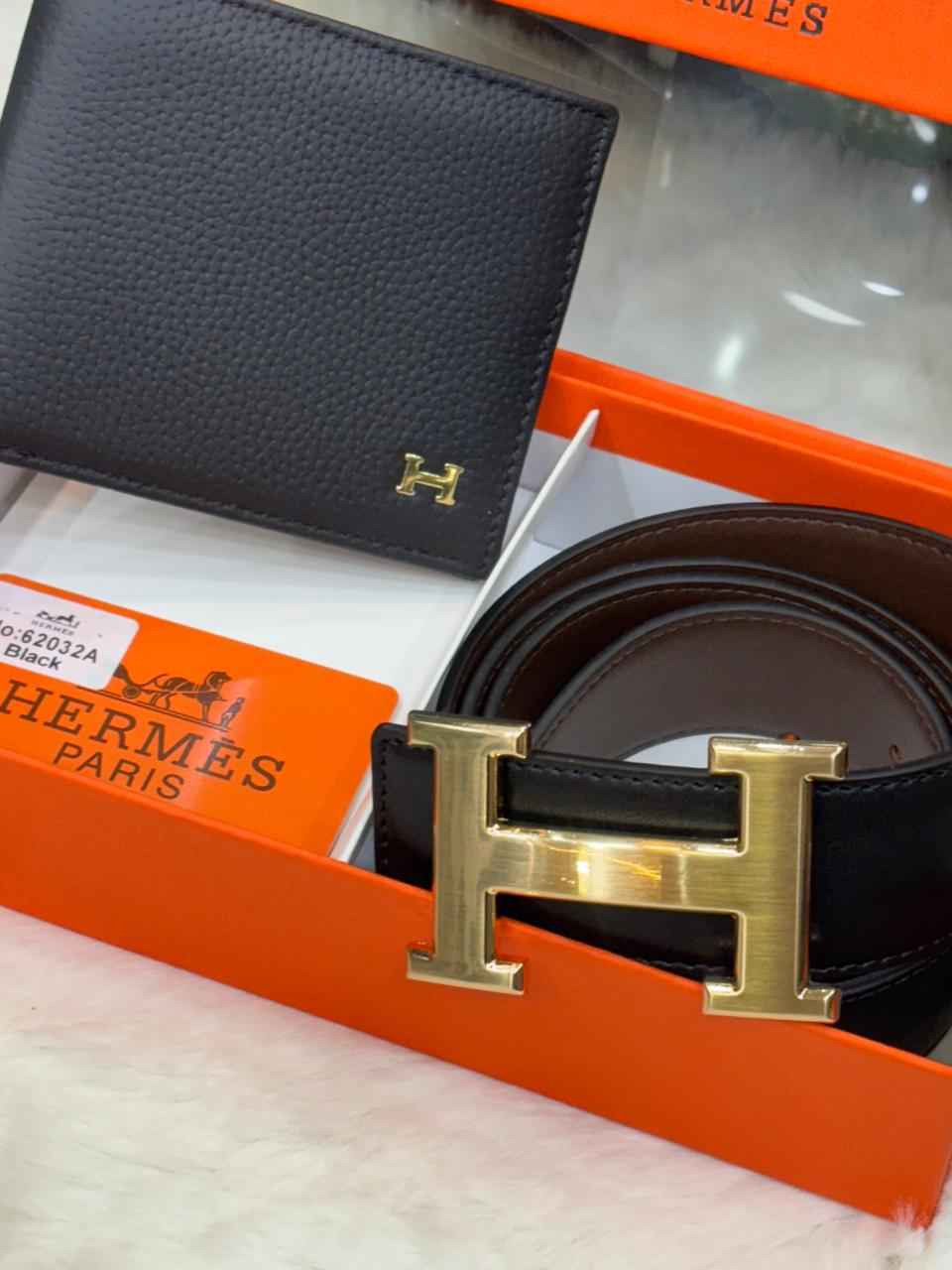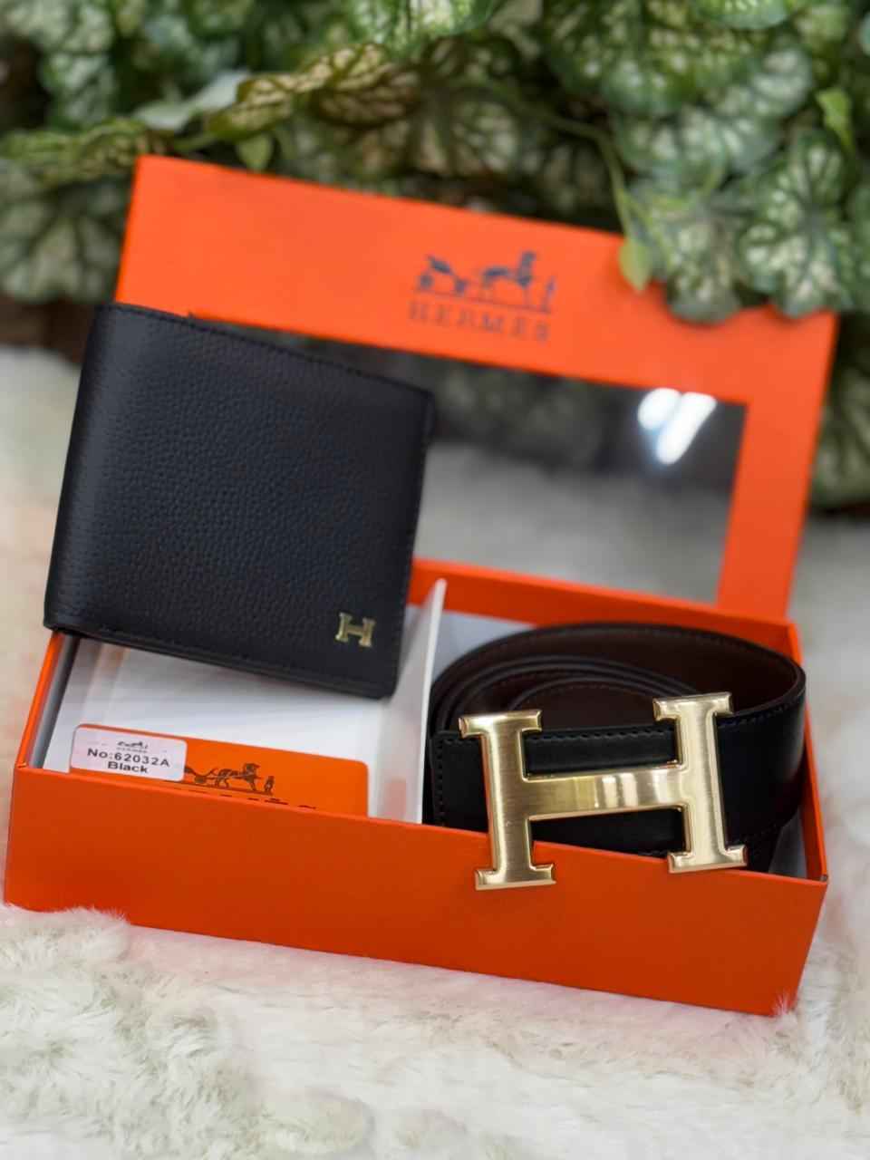 Luxury hermes gift set in genuine leather next to original quality belt plus wallet combo