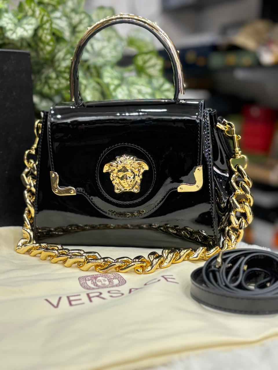 Elevate your fashion game with the Luxury Versace La Medusa Bag, a true icon of elegance and sophistication. Expertly crafted in patent genuine leather, this stylish handbag features the signature Versace Medusa emblem, making it a standout accessory for any occasion.