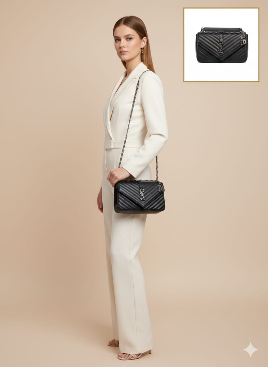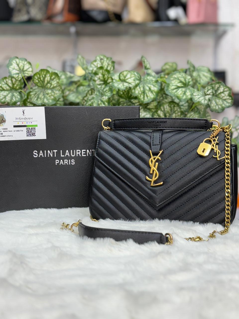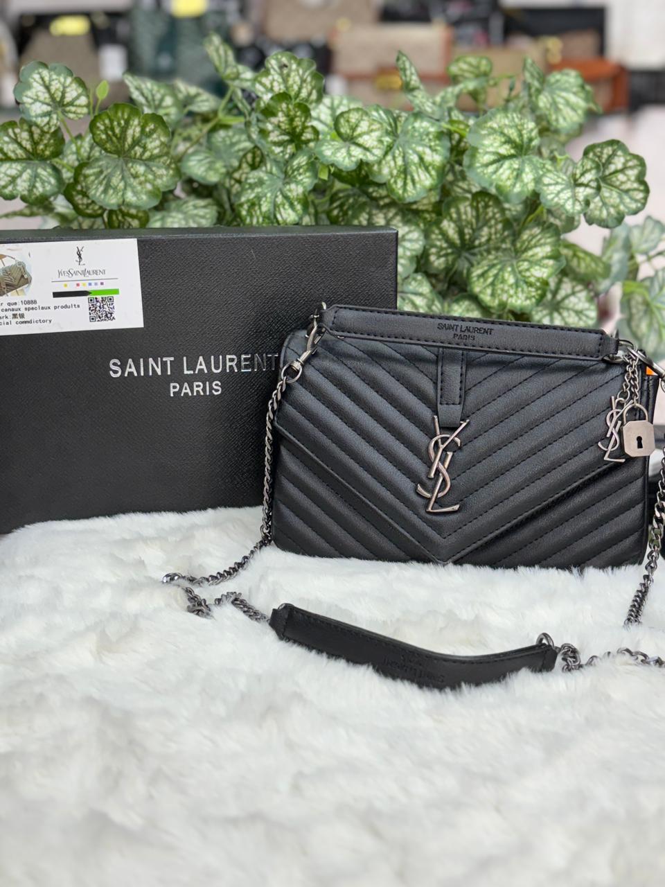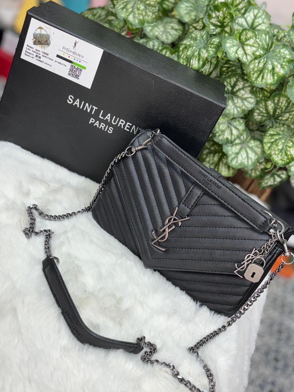 This luxurious YSL Saint Laurent bag features a unique lock and key design, providing both style and security. Expertly crafted with high-quality materials, this bag is a must-have for any fashion enthusiast. Stay on-trend while keeping your belongings safe with this iconic statement piece.