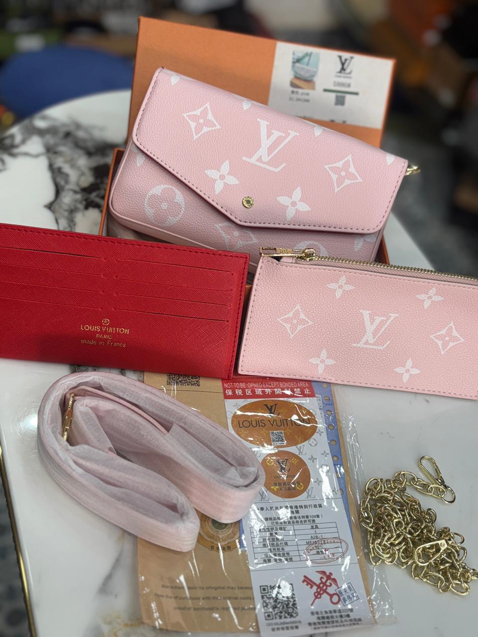 Louis Vuitton (lv) sling (three pcs set )sling ,wallet and card holder with one belt and detachable chain