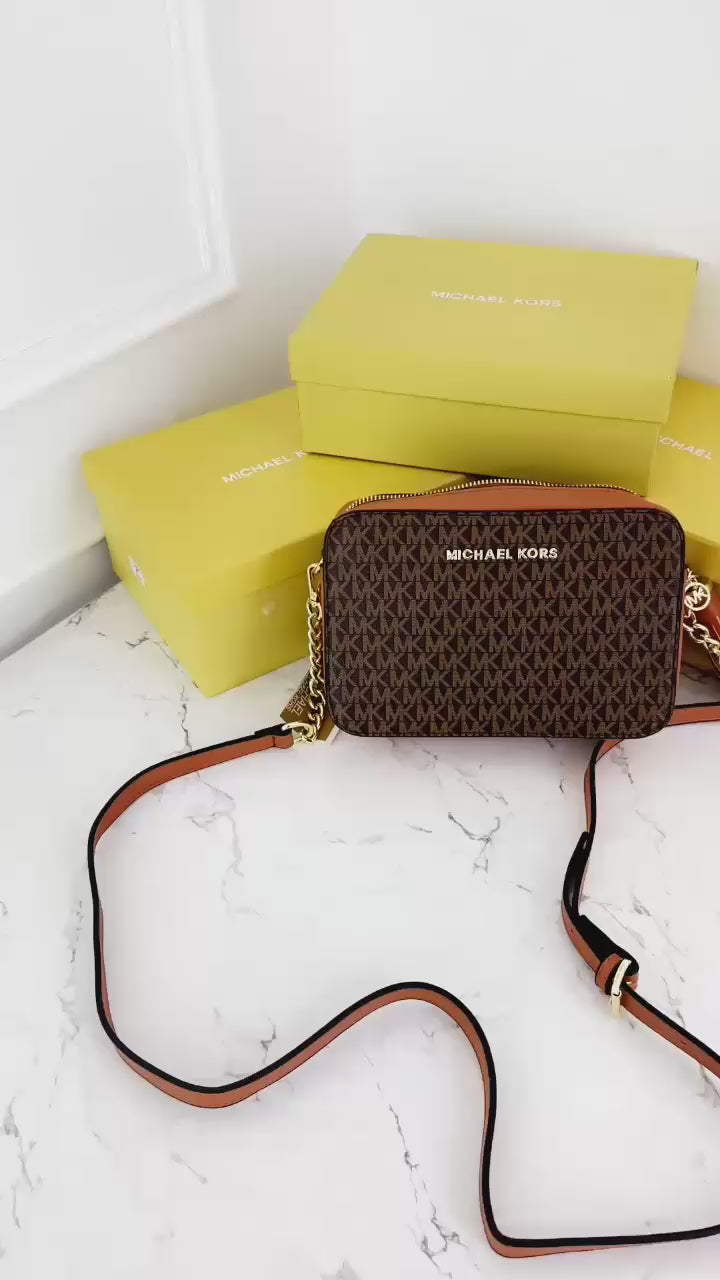 Introducing the Michael Kors Jet Set, featuring the iconic Mk logo. With its sleek design and versatile functionality, this bag is perfect for everyday use. Made from high-quality materials, it is both durable and stylish. Add a touch of luxury and elevate your look with the Michael Kors Jet Set.