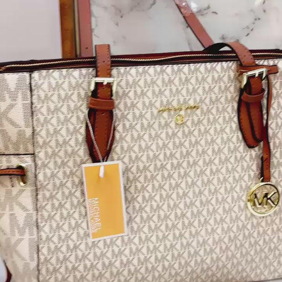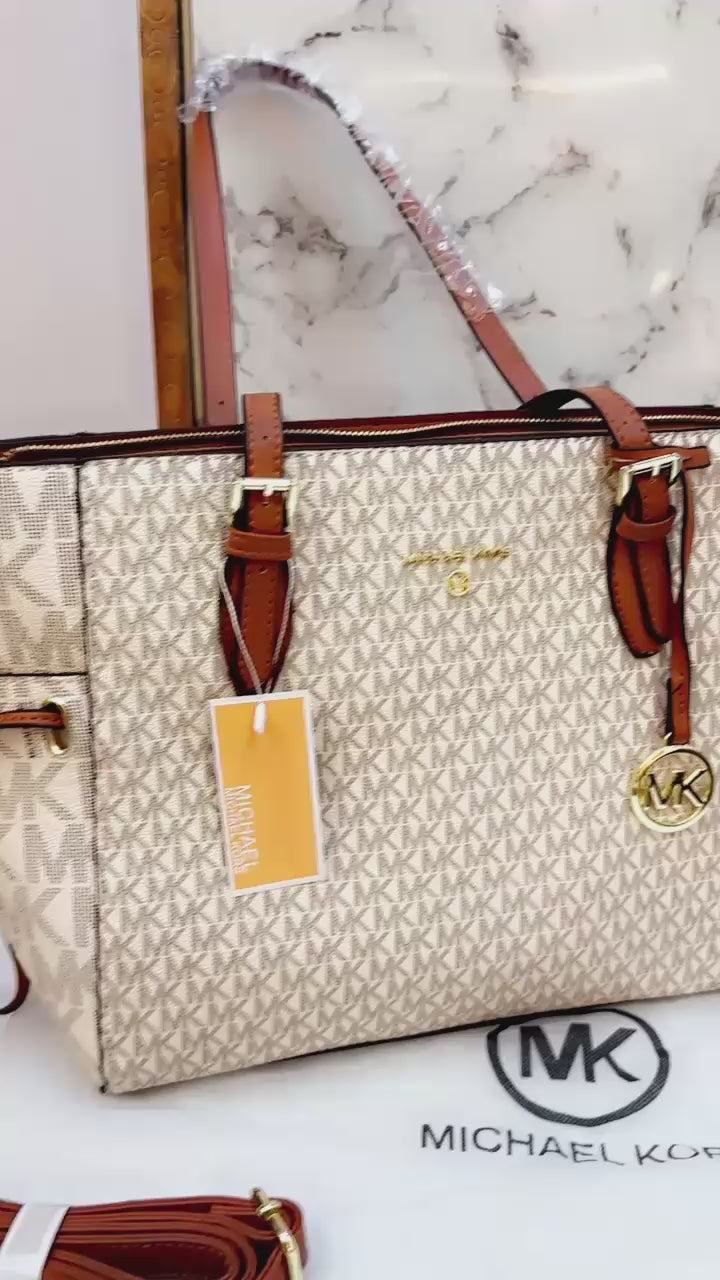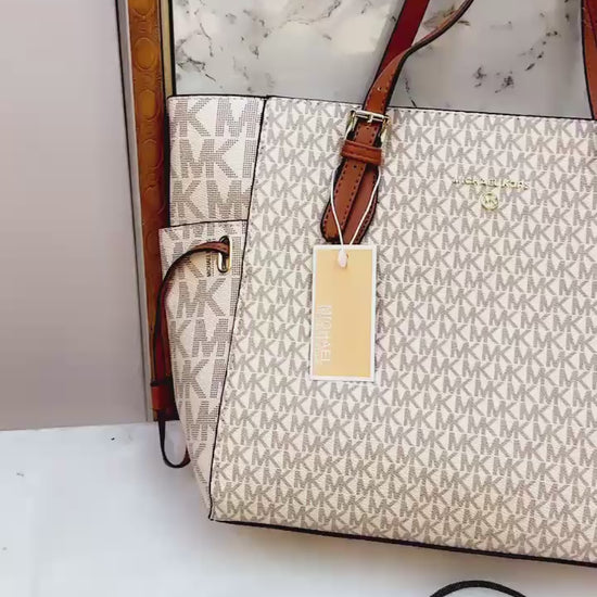 The Michael Kors MK Tote Gully Large Signature Tote is the epitome of luxury and style. Crafted from high-quality materials and featuring the iconic MK logo, this tote exudes sophistication and elegance. With its spacious design, it's perfect for carrying all your essentials while making a statement. Elevate your look with this timeless piece.