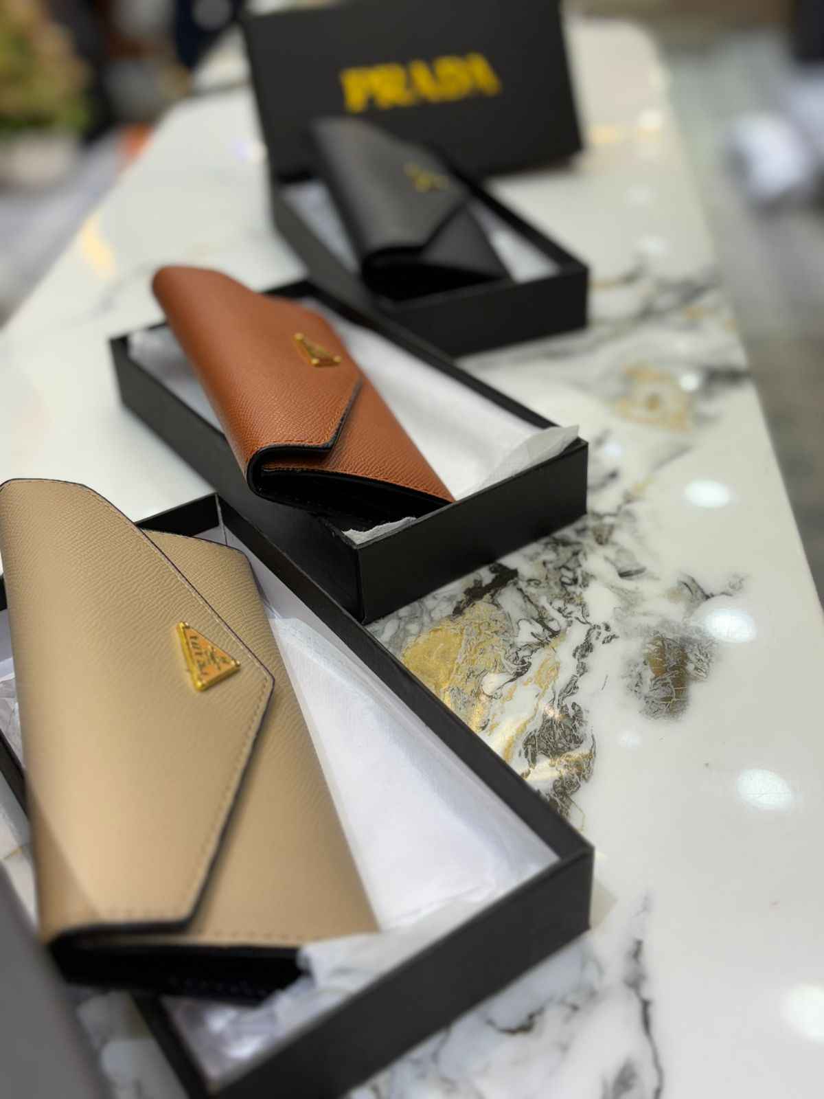 This Prada 2 piece wallet set is a must-have for any fashion-forward individual. Made by the renowned luxury brand Prada, it boasts impeccable craftsmanship and sophisticated design. Perfect for organizing your belongings in style.
