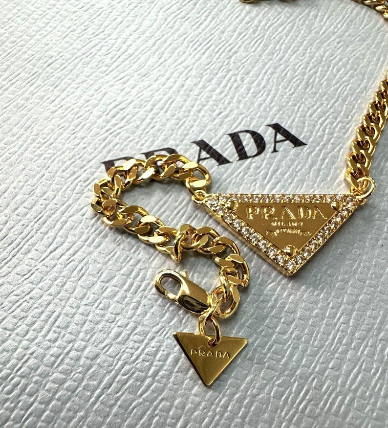 Enhance your style with the sleek and elegant Prada neck chain. Made from high-quality materials, this luxurious accessory is perfect for any occasion. With Prada's renowned craftsmanship and design, you'll be sure to make a statement wherever you go. Elevate your look with Prada.