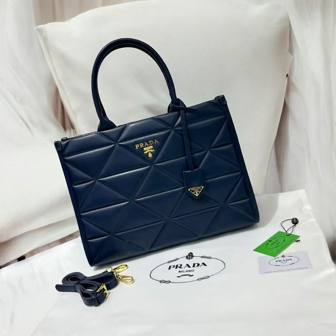 this Prada Tote is expertly crafted and designed by the renowned fashion house, Prada. With a timeless and sophisticated style, this tote offers both fashion and function. Made with high-quality materials, it is durable and perfect for everyday use. A must-have for any fashion-conscious individual looking for a statement piece that will elevate their wardrobe.