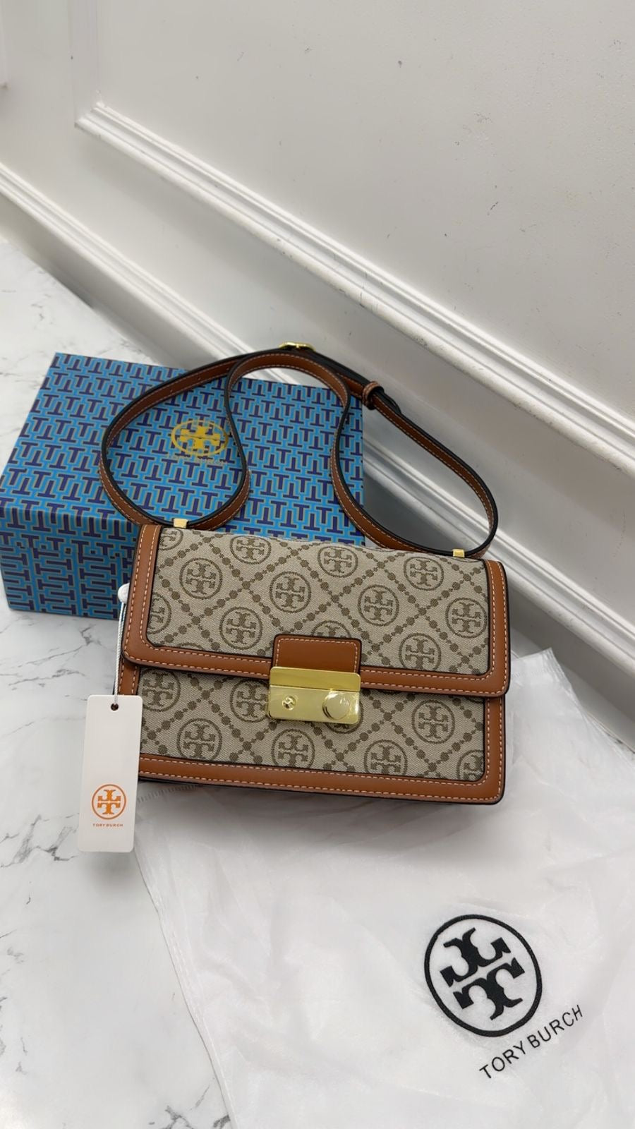 ToryExpertly crafted with the iconic Tory Burch monogram, this sling is both stylish and functional. Made with high-quality materials, it provides durability and a timeless aesthetic. The perfect accessory for any outfit, it exudes sophistication and elegance. Ideal for the fashion-forward and those with a taste for luxury.