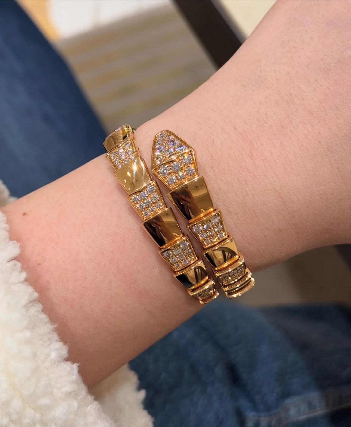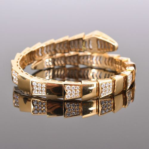 Crafted by luxury brand Bvlgari, the serpenti bracelet is the epitome of elegance and sophistication. Made with quality materials and expert craftsmanship, this timeless piece is a must-have for any jewelry collection. Stand out with the iconic Bvlgari name adorning your wrist.