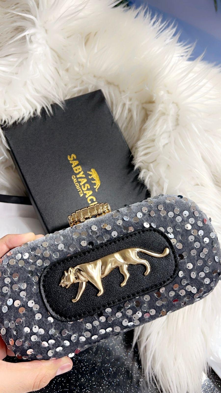 Introducing the Sabyasachi Sequence Clutch, perfect for any occasion. With its sleek design and high-quality materials, this clutch is the ultimate choice for elegance and sophistication. Made with premium satin and intricate sequin detailing, it adds a touch of glamour to any outfit. Plus, its spacious interior allows for easy organization of your essentials. Elevate your style with this stunning clutch.