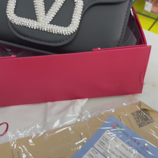 *Introducing Latest Valentino V Logo Garavani Loco Crystal Small Shoulder Crossbody Bag*